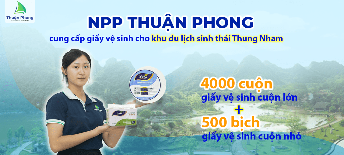 Ngoài ra, Thuận Phong tự hào là đối tác cung cấp giấy vệ sinh cho khu du lịch sinh thái Thung Nham, với số lượng 4.000 cuộn giấy vệ sinh cuộn lớn và 500 bịch giấy vệ sinh cuộn nhỏ. Thuận Phong cam kết đáp ứng nhu cầu về chất lượng và số lượng, góp phần mang lại trải nghiệm tốt nhất cho du khách khi đến tham quan.
